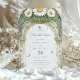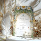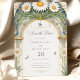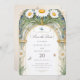 Annoncez votre journée spéciale avec cette magnifique invitation Save the Date, qui présente un design d'inspiration Art Nouveau. L'avant de la carte présente un agencement captivant de marguerites blanches encadrées par des accents dorés complexes et des feuillages verdoyants, créant un sentiment d'élégance intemporelle et de beauté naturelle. Une charmante touche de papillons et un délicat bleu ajoutent à l'atmosphère romantique. Le dos de la carte poursuit le thème élégant avec un motif floral détaillé, ce qui en fait un parfait souvenir pour vos invités. La palette de couleurs douces du blanc, du vert, du bleu et de l'or fournit un aperçu sophistiqué et serein de votre prochain mariage.