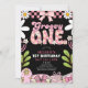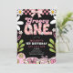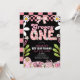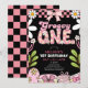 Invitation Daisy 1st Birthday Pink and Black Retro Birthday