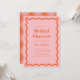 Ces invitations de mariage ont une couleur orange vif associée à un rose clair, créant une esthétique dynamique et ludique. La bordure de vague rétro ajoute une touche de nostalgie et ajoute un élément amusant et unique au design. Les invitations sont disponibles en plusieurs couleurs, ce qui vous donne la flexibilité de créer un look cohésif pour votre journée spéciale. La papeterie de coordination est conçue pour mixer et correspondre, vous permettant de créer un look personnalisé et coordonné pour votre mariage.