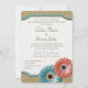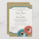 Jolie Gerbera Daisies dans les tons aqua et corail avec une touche champêtre rustique de burlap. Parfait pour les mariages de la nature inspirés à la campagne, au bord d'un lac ou à la plage. Contacter le concepteur pour les marguerites dans vos couleurs mariages.