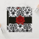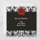 Invitation DAMAS NOIR & BLANC, MONOGRAMME DE CIRE ROUGE Ice