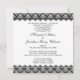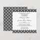 Ce faire-part de mariage formel présente un motif damassé noir et blanc élégant avec une bordure florale noire.
