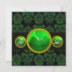 INVITATION DAMAS NOIR VERT AVEC MONOGRAMME ÉMERALDE TRÈFLE