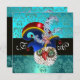 Design de monogramme élégant, chic, cool et unique avec un chapeau elfique bleu-vert, des hiboux expressifs drôles, des trèfles, des pierres précieuses rubis saphir vibrantes et des fleurs de damas sarcelle bleu-vert aqua. Facile à personnaliser avec vos initiales et votre propre texte pour une annonce de fête d'anniversaire, un mariage, des cartes de lieu, des cartes "save-the-date", des cartes de remerciement, des douches de mariage, des soirées, des fêtes de fiançailles, ou presque n'importe quel événement que vous souhaitez ! Modélisation et rendu nurbs très précis par Bulgan Lumini (c). Partie de la série Hyper Talismans.