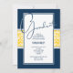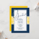 La bande Damask en jaune, bleu marine et blanc est bordée en bleu marine sur ces invitations à la fête de graduation. VOIR TOUTES LES COULEURS pré-faites dans notre magasin.