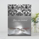 Invitation DAMASK GEMME PIERRE MONOGRAMME ruban blanc gris no