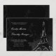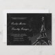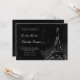 Des perles de billow et bouclent autour d'une tour Eiffel blanche dessinée à la main contre un somptueux damas floral noir et charbon de bois. Un poème d'amour français est faiblement inscrit dans l'arrière - plan de minuit, fournissant l'accompagnement parfait à la formulation personnalisable de la faire-part de mariage dans le script et la gravure de polices de style, en blanc et argent.