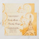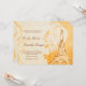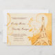Des perles de billow et de curl autour d'une tour Eiffel en sienne brûlée dessinée à la main contre un damas somptueux, fleuri jaune et orange, accentué de petites touches d'un motif de pandelier stylisé. Un poème d'amour français est faiblement inscrit dans l'arrière - plan crème, fournissant l'accompagnement parfait à la formulation personnalisable faire-part de mariage dans le script et les polices de style gravure, également dans le sienne brûlée.