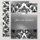 Élégant, raffiné et unique damas Art Nouveau avec une pierre précieuse 3D brillante. Ce design artistique et cool est facilement personnalisable avec votre texte et vos initiales pour une cérémonie de mariage, une carte d'annonce de nuptial, des cartes de table, une carte "save-the-date", une carte de remerciement, des fêtes de bébé, des fêtes de mariage, des anniversaires sweet 16, quinceanera, des fêtes d'anniversaire, Bat Mitzvah, des fêtes de fiançailles romantiques, Noël, les fêtes de fin d'année, l'entreprise, les réunions de famille, les célébrations du nouvel an, les anniversaires de mariage, les rassemblements, les remises de diplômes, les concerts, les récitals ou presque n'importe quel événement que vous souhaitez ! Conception numérique par BALDESIGN3D (c).