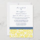 Cartes d'invitation de réception de mariage pour la réception distincte dans le bleu marine foncé élégant et contemporain, le motif vintage jaune citron et blanc lumineux de damassé florale classique élégante et chic. Customisez ces invitations avec vos détails de mariage d'inviter vos invités à votre célébration après un mariage privé ou de destination. Disponible dans les produits assortis pour tout votre mariage a besoin.