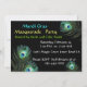 Élégante beauté fantaisiste, masques de carnaval vénitiens aux plumes vibrantes avec des yeux bleus expressifs en couleurs or rouge noir. Conception artistique de fête masquée avec des plumes de paon colorées sarcelle aqua bleu vert. Conception graphique numérique par Bulgan Lumini - Baldesign3d (c)