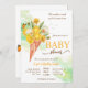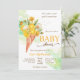 Dandelion souhaite modèle d'invitation baby shower. Bouquet de pandelions en fleurs, boules de bouffées de pandelion, un petit papillon dans un cône de crème glacée.