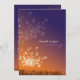 Illustration poétique des pandelions scintillants dans le champ du coucher du soleil (combinaison de couleurs orange et violet) sur invitation de mariage formelle personnalisée. Personnalisez les cartes d'invitation avec votre propre texte pour un MARIAGE WHIMSICAL TWILIGHT | SOIRÉE ROMANTIQUE MARIAGE DE JARDIN ou ORANGE & PURPLE COULOR SCHEME MARIAGE! (Vous pouvez trouver les essentiels et les faveurs mariages correspondants dans ce magasin, le paradis nuptial. Contactez ujean4791@gmail.com pour un travail personnalisé et/ou la coordination de la papeterie mariage.))