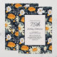 75e anniversaire invitation pour les femmes conçu avec de jolis petits pissenlits jaunes et des marguerites blanches sur un arrière - plan bleu marine. Personnalisez en ajoutant le nom de l'invitée d'honneur, son âge et les informations de son parti. Contactez-nous pour obtenir de l'aide sur la personnalisation ou pour demander des produits correspondants.