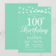 Invitation d'anniversaire 100 ans Vert Menthe