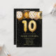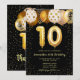 Invitation d'anniversaire 10 ans, ballon noir or Invitation d'anniversaire 10 ans, Invitation d'anniversaire imprimable confettis, Invitation d'anniversaire à pois