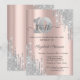 Un design moderne, chic et glamour avec des gouttes de paillettes argentées sur fond rose gold.