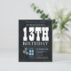 Invitation de fête d'anniversaire 13 ans ballon bleu blanc tableau noir rustique vintage