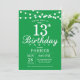 Invitation d'anniversaire 13 ans avec guirlandes lumineuses. Fond vert. Anniversaire d'enfant. Invitation d'anniversaire pour garçon ou fille. 13e 15e 16e 18e 20e 21e 30e 40e 50e 60e 70e 80e 90e 100e, Tout âge. Pour une personnalisation plus poussée, veuillez cliquer sur le bouton "Personnaliser" et utiliser notre outil de conception pour modifier ce modèle.