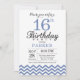 Invitation d'anniversaire 16 ans Bleu Chevron