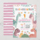 Invitation d'anniversaire 1 an fille pastel dinosa