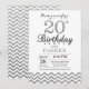 Invitation d'anniversaire 20 ans Paillettes Argent