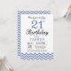 Invitation d'anniversaire 21 ans avec Chevron bleu. Noir et blanc. Anniversaire adulte. Invitation d'anniversaire pour homme ou femme. Pour une personnalisation plus poussée, veuillez cliquer sur le bouton "Personnaliser" et utiliser notre outil de conception pour modifier ce modèle.