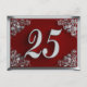 Carton décoré de texte argenté et de coins ornés floraux sur fond rouge foncé pour un 25e anniversaire. Selon le texte que vous entrez, peut être utilisé comme une invitation ou une carte de vœux.