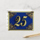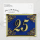 Carton postal de luxe décoré de texte doré et de coins ornés pour un anniversaire de 25 ans avec fond bleu. Selon le texte que vous entrez, peut être utilisé comme une invitation ou une carte de vœux.