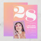 Cartes d'invitation d'anniversaire 28 ans pour elle Dégradé rose Photo rétro