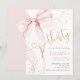Invitation d'anniversaire 30 ans à ruban rose. Design féminin moderne en rose poudré et or. Caractéristiques d'un ruban coquette aquarelle tendance et d'une police de caractères « trente » en écriture cœur. Parfait pour une célébration d'anniversaire de femme au style élégant. Personnalisez avec vos propres détails. Cartes d'invitation Zazzle imprimées ou modèle de template numérique téléchargeable instantanément.