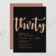 Invitation d'anniversaire 30 ans personnalisée 'Trente' noire et or rose avec une typographie classe et moderne. Personnalisez avec le nom, l'âge et les détails de la fête.