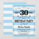 Invitation d'anniversaire 30 ans rayures bleues et blanches Typographie. À 30 ans, on trinque ! Anniversaire adulte. Anniversaire homme ou femme. Enfant garçon ou fille, adolescent ou adolescente, invitation d'anniversaire. 13ème, 15ème, 16ème, 18ème, 20ème, 21ème, 30ème, 40ème, 50ème, 60ème, 70ème, 80ème, 90ème, 100ème. Tout âge. Pour une personnalisation plus poussée, veuillez cliquer sur le bouton "Personnaliser" et utiliser notre outil de conception pour modifier ce modèle.