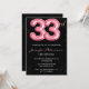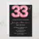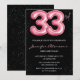 Invitation d'anniversaire 33 ans Glam Rose Ballon Noir