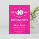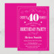 Invitation d'anniversaire 40 ans rose chaud et bla