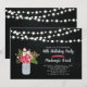Célébrez votre jour spécial avec cette invitation d'anniversaire élégante. Ce design présente des guirlandes lumineuses, un pot Mason et un bouquet de fleurs avec un fond de tableau noir.