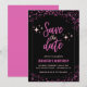 Cartes d'invitation d'anniversaire 48 ans rose Enregistrez la date noir Glam chic paillettes scintillantes