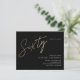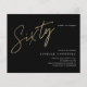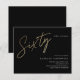 Invitation d'anniversaire 60 ans minimaliste moderne avec un numéro de style en faux or et écriture manuscrite Sixty et les détails de votre fête dans une police serif classique sur fond noir, simple et élégant, excellente surprise pour les hommes et les femmes pour cet anniversaire marquant. La couleur de fond noir peut être changée à n'importe quelle couleur de votre choix.