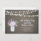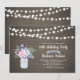 Célébrez votre jour spécial avec cette invitation d'anniversaire élégante. Ce design présente des guirlandes lumineuses, un pot Mason et un bouquet de fleurs sur un fond en bois. Vous pouvez personnaliser le texte pour tout âge ou événement.
