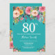 Invitation d'anniversaire 80 ans à motif floral sarcelle pour femmes. Fleur florale aquarelle. Fond sarcelle aqua turquoise. Fleur rose, jaune, orange, violette. Anniversaire adulte. 13e 15e 16e 18e 20e 21e 30e 40e 50e 60e 70e 80e 90e 100e, tous âges. Pour une personnalisation plus poussée, veuillez cliquer sur le bouton "Personnaliser" et utiliser notre outil de conception pour modifier ce modèle.