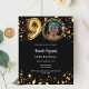 Une invitation photo moderne et élégante pour une fête d'anniversaire de 90 ans. Un fond noir classique, orné d'étoiles dorées. Personnalisez et ajoutez les détails de votre fête.