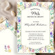 Cette jolie invitation d'anniversaire 99 ans à fleurs sauvages aquarelle colorée est un moyen charmant d'inviter vos invités à la fête. Ce design présente des aquarelles peintes à la main et un cadre formel avec des détails textuels que vous pouvez personnaliser à l'aide de l'éditeur de texte.