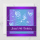 Cartes d'invitation pour l'anniversaire des 7 ans d'une fille avec des bulles de papillon bleu sarcelle et violet.