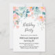 Invitation d'anniversaire avec une bordure florale élégante. Fleurs et feuilles en rose et vert.