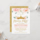 parties scintillant de princesse rose fleurie et dorée sur le thème de l'anniversaire pour une petite fille. Ce dessin présente un titre de calligraphie en faux or et des points couronne et rose ainsi que des arrangements floraux d'aquarelle rose. Une invitation sucrée à une fête d'anniversaire sur le thème de la princesse.