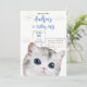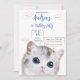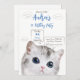 Cat à thème Anniversaire Invitation pour notre prochaine célébration. Invitation pour la fête d'anniversaire de l'enfant avec un thème de chat mignon, avec un chaton blanc aux yeux bleus sur un arrière - plan blanc. Des bulles de devis adorables pour customiser les détails de votre fête.