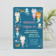 Une invitation d'anniversaire à thème nautique décorée avec de petits chatons sirènes mignons.