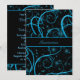 Élégante invitation d'anniversaire à tourbillons de bleu sarcelle et étoiles sur fond noir. Vous pouvez personnaliser avec votre style de police et couleur de police.