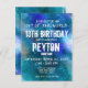 Carte postale d'invitation d'anniversaire aquarelle Galaxie Bleu Aqua. Idéal pour les garçons et les filles.