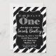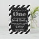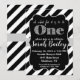 Invitation d'anniversaire noir et argent pailleté pour premier anniversaire